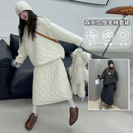1*0下载视频“2025843黑色格纹半身裙棉服套装”