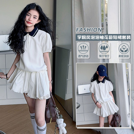1*1收藏“XZ2025-31白色翻领短袖花苞短裙”