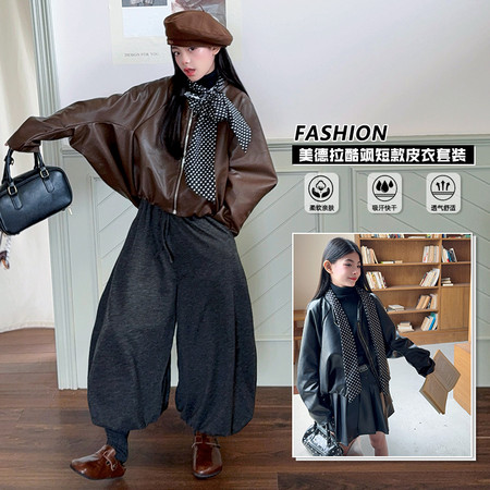 1*8下载“2025842咖色黑色圆领皮衣三件套”图片包