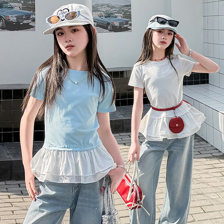 1*2下载视频“XZ2026-1牛仔花边套装带珍珠项链”